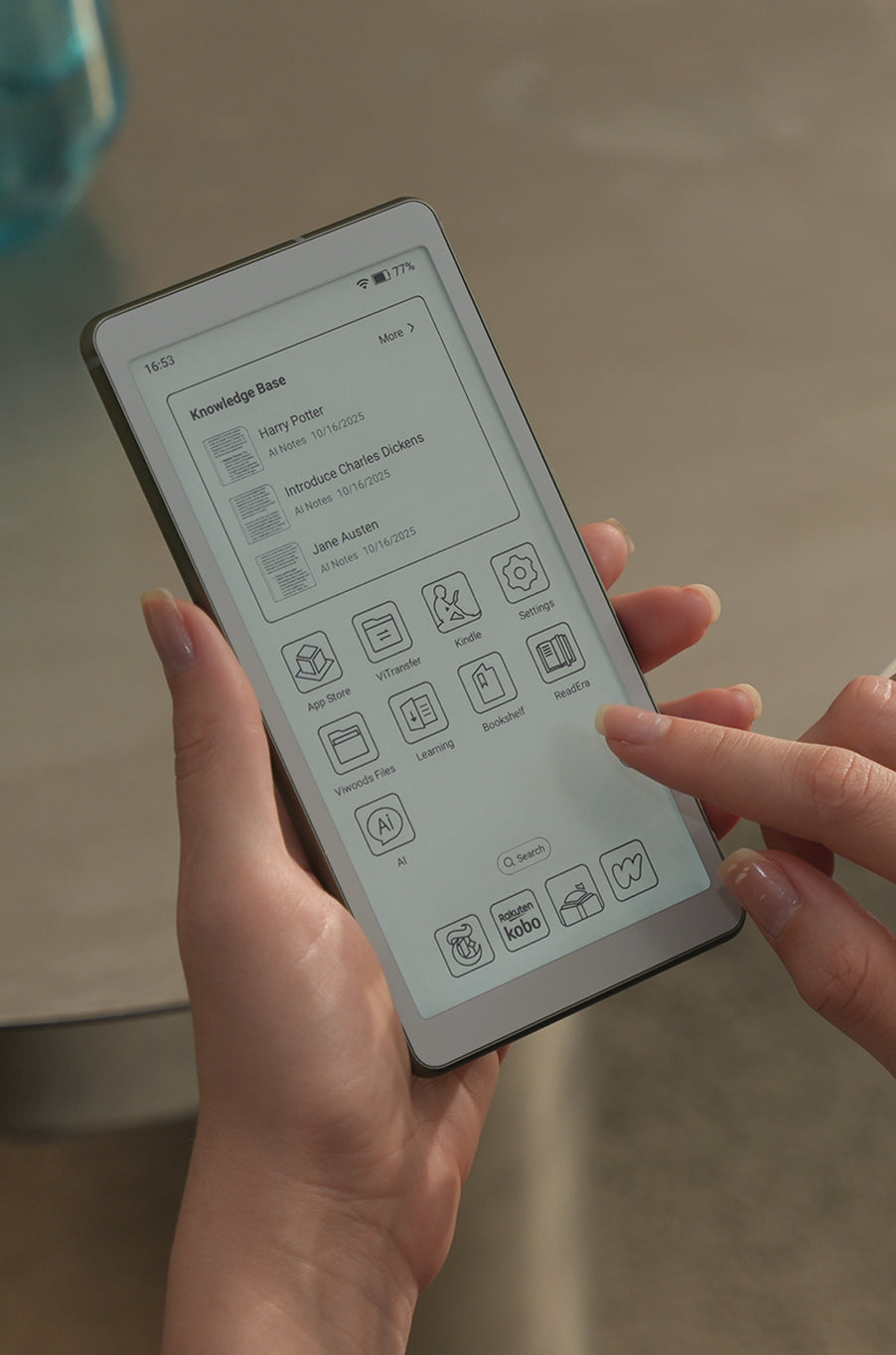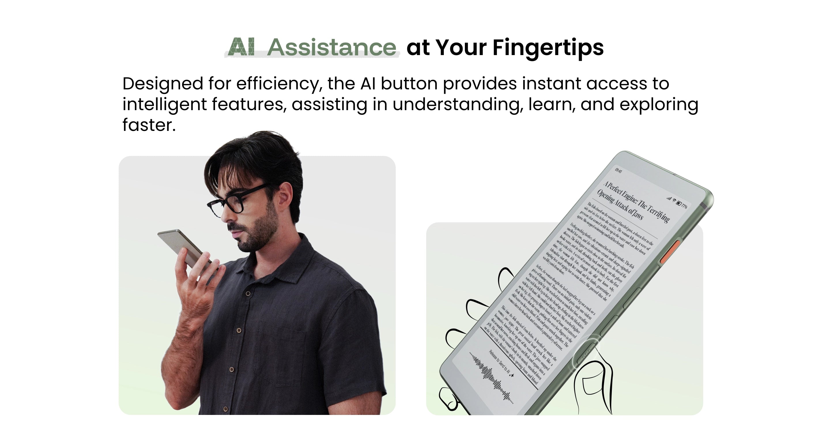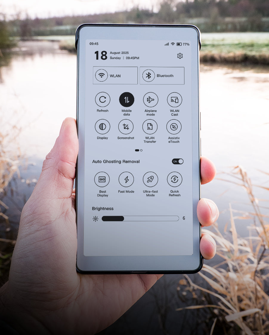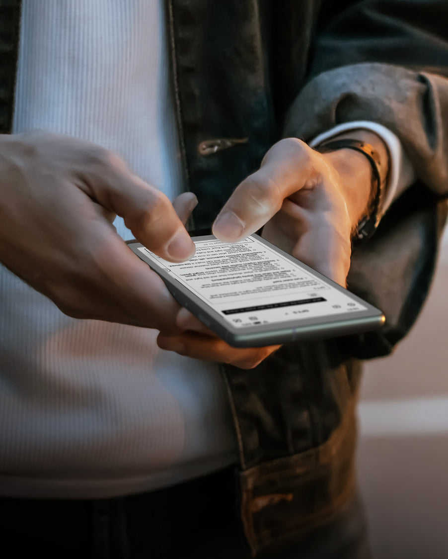 Experience long reading sessions like real paper with our premium E-Ink display, crisp, clear, and easy on the eyes.